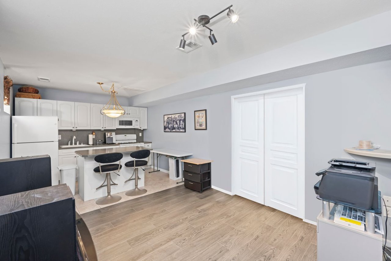 The fully finished basement adds even more functional living space with a laundry area, garage access, a second full bath, and a flexible rec room perfect for movie nights, a home gym, or just relaxing. There's also access to the studio apartment which is currently being used as part of the main unit with its own full bathroom, ideal for poolside guests.