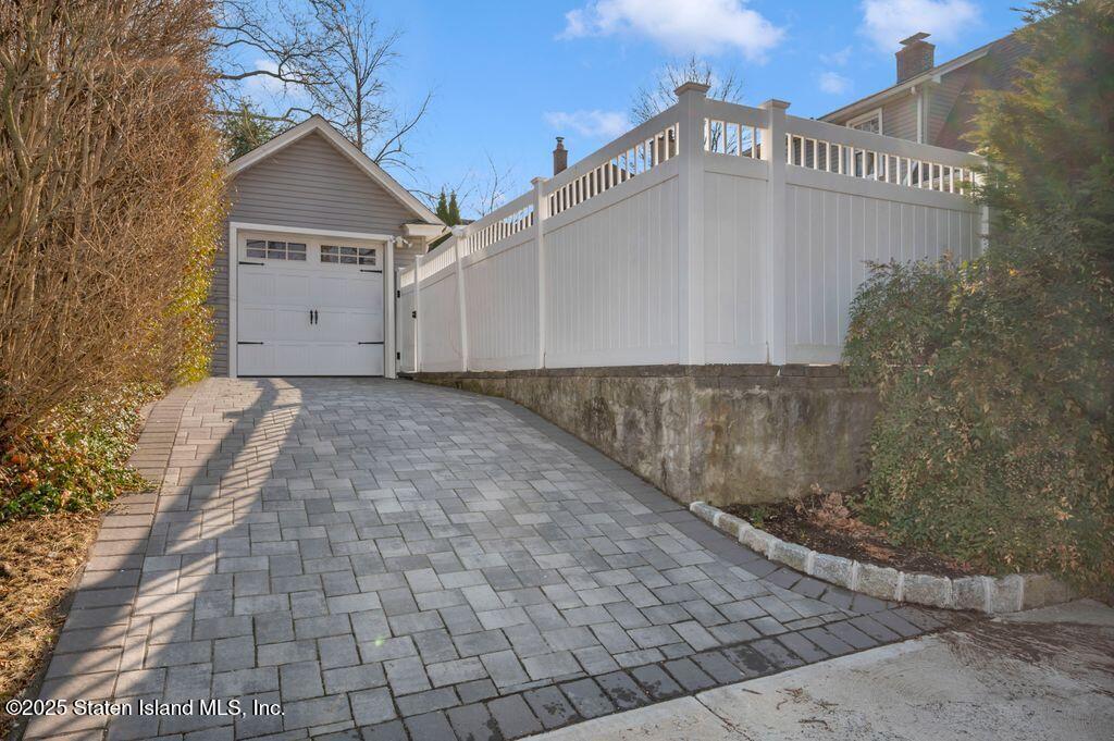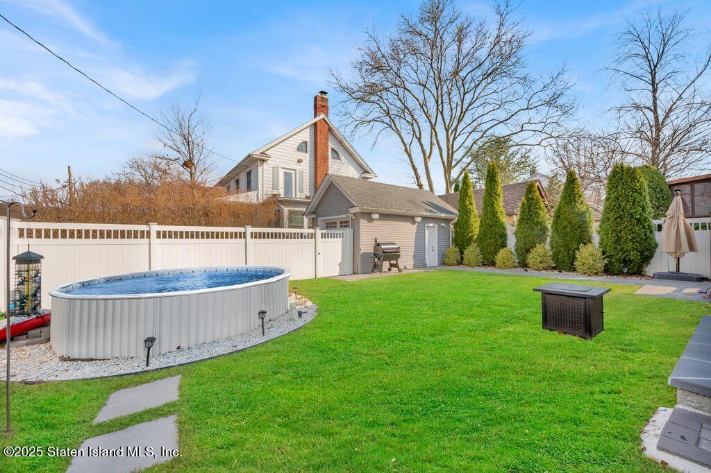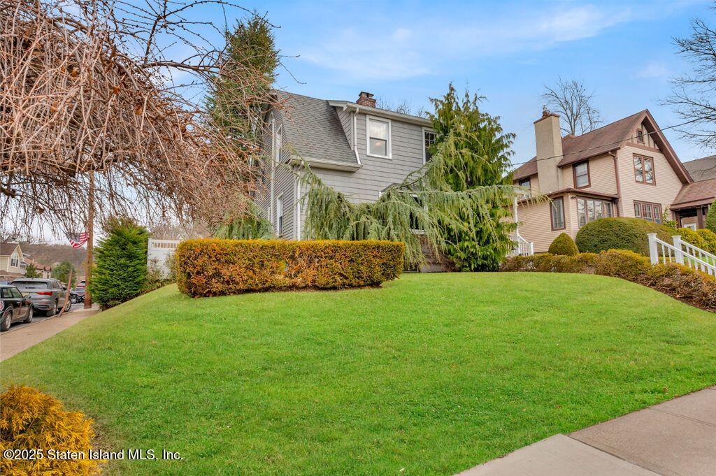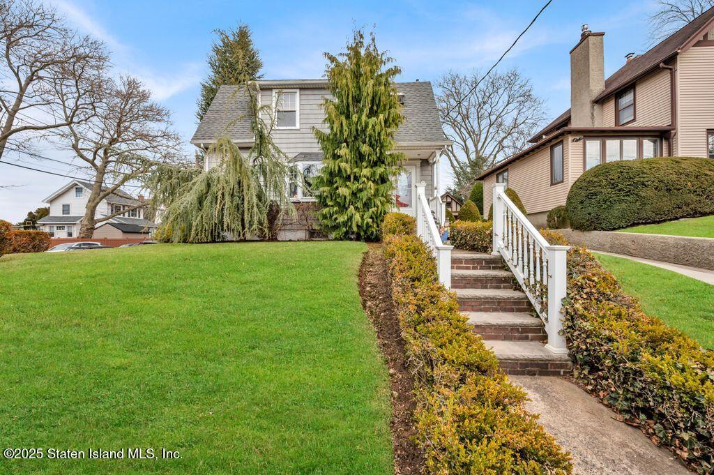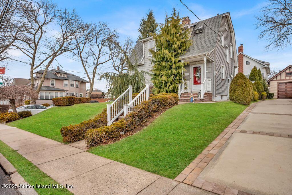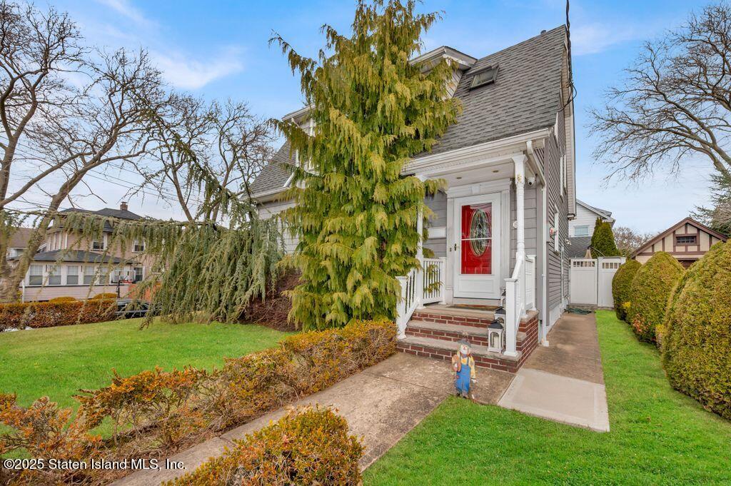 Welcome to Your Castleton Corners Retreat! Nestled on a quiet, tree-lined street, this magnificent detached home offers the perfect blend of charm and convenience. A beautifully manicured landscape and elegant brick steps with bluestone treads, create a grand first impression, inviting you inside to experience all this home has to offer. Located just minutes from shopping, express buses, and the scenic trails of Clove Lakes Park, it's an ideal place to call home. Step through the door to find hardwood floors and custom moldings adding warmth and character throughout. The spacious living room offers tons of natural light and features a cozy wood-burning fireplace that greets you from the convenient entrance foyer. The eat-in kitchen showcases custom cabinetry, granite countertops, a stylish tile backsplash, and a sliding glass door that opens to the backyard. Upstairs, the primary bedroom features a charming alcove, while two additional bedrooms and a full bath with a skylight complete this level. A full, partially finished basement with a half bath offers extra space for storage, a playroom, or a home gym. Modern comforts include an updated heating and air conditioning system with energy-efficient split units throughout. This large corner property allows access to a large, private backyard that is accessible from a walkway at the side of the house as well as from the driveway on the side. Completely fenced with high quality fencing materials, the yard also features a brand-new pool, with still plenty of space to enjoy the outdoors! The driveway to the one-car garage can fit two more cars, and really adds to the home's convenience. With over 5,000 sq ft of property, this stunning home is ready for you to make it your own!