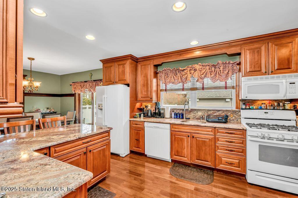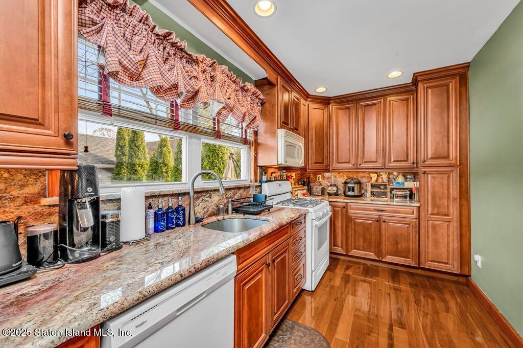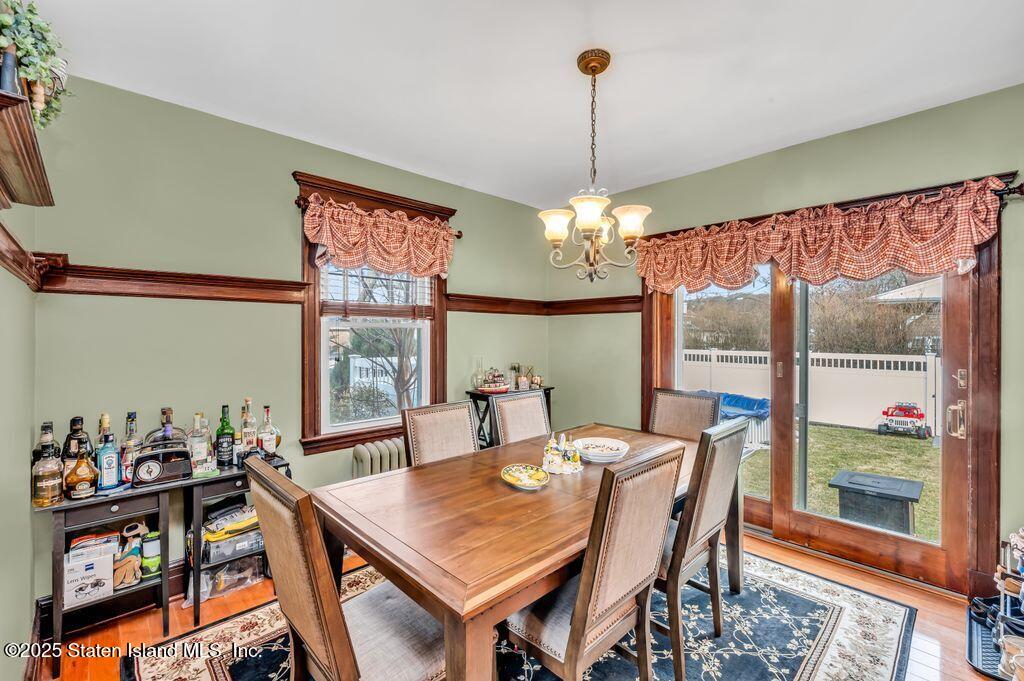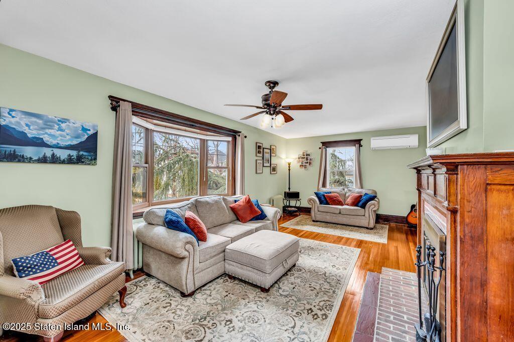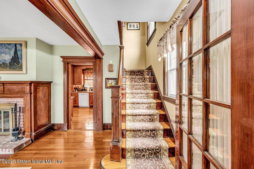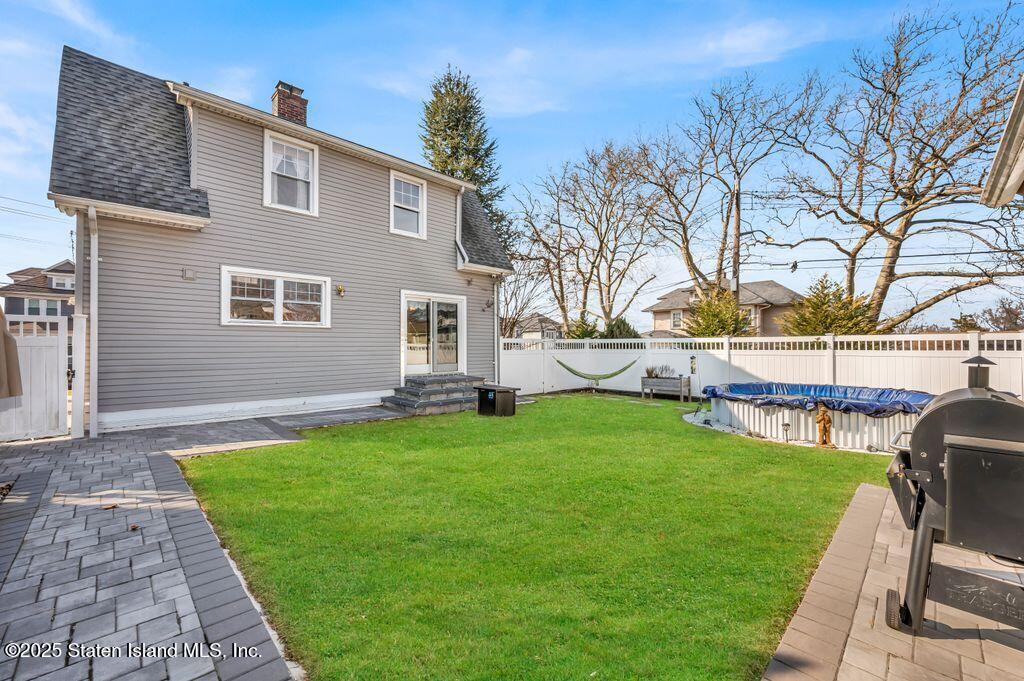 Welcome to Your Castleton Corners Retreat! Nestled on a quiet, tree-lined street, this magnificent detached home offers the perfect blend of charm and convenience. A beautifully manicured landscape and elegant brick steps with bluestone treads, create a grand first impression, inviting you inside to experience all this home has to offer. Located just minutes from shopping, express buses, and the scenic trails of Clove Lakes Park, it's an ideal place to call home. Step through the door to find hardwood floors and custom moldings adding warmth and character throughout. The spacious living room offers tons of natural light and features a cozy wood-burning fireplace that greets you from the convenient entrance foyer. The eat-in kitchen showcases custom cabinetry, granite countertops, a stylish tile backsplash, and a sliding glass door that opens to the backyard. Upstairs, the primary bedroom features a charming alcove, while two additional bedrooms and a full bath with a skylight complete this level. A full, partially finished basement with a half bath offers extra space for storage, a playroom, or a home gym. Modern comforts include an updated heating and air conditioning system with energy-efficient split units throughout. This large corner property allows access to a large, private backyard that is accessible from a walkway at the side of the house as well as from the driveway on the side. Completely fenced with high quality fencing materials, the yard also features a brand-new pool, with still plenty of space to enjoy the outdoors! The driveway to the one-car garage can fit two more cars, and really adds to the home's convenience. With over 5,000 sq ft of property, this stunning home is ready for you to make it your own!